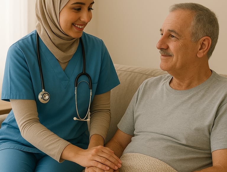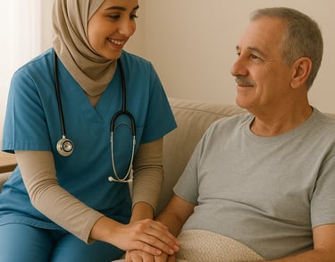 نهتم بأهلنا الكبار بعناية طبية وإنسانية، من المرافقة اليومية، المساعدة في الحركة، التغذية، والمتابعة الصحية المستمرة داخل المنزل.